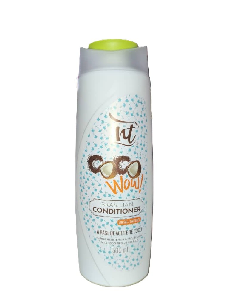 El Acondicionador Coco Wow de NTI está formulado con aceite de coco y diseñado especialmente para cabellos tratados químicamente, ofreciendo reparación, hidratación y fortalecimiento profundo.