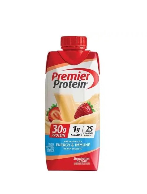 El Premier Protein Strawberry & Cream de 325 ml es un batido listo para beber que combina alto contenido proteico con un sabor dulce y cremoso a fresa con nata.