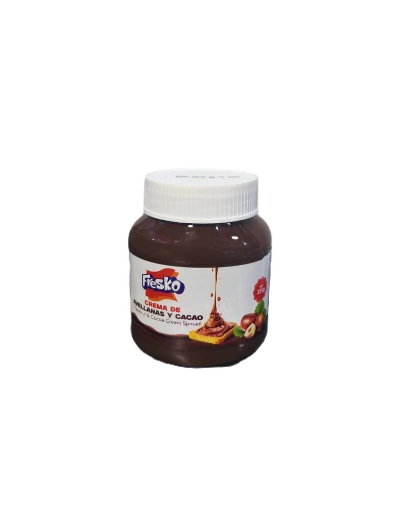 La Crema de Avellanas y Cacao Fresko de 350 g es un producto para untar, pensado para desayunos y repostería. Se caracteriza por su sabor equilibrado entre cacao y avellanas, textura cremosa y presentación en frasco de 350 gramos.