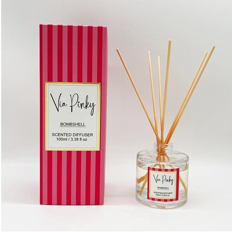 El Scented Diffuser Bombshell de Via Pinky es un difusor aromático de varillas, diseñado para ambientar espacios con una fragancia dulce y sofisticada. Se fabrica en China y se distribuye en Latinoamérica y Cuba como opción económica y decorativa para el hogar.