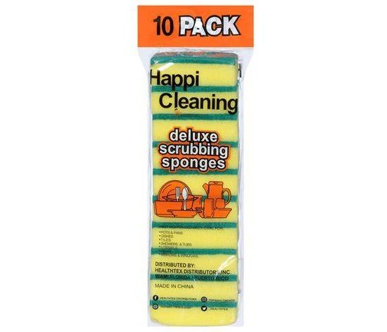 El “10 Pack Deluxe Scrubbing Sponges” es un set de esponjas multiuso diseñado para limpieza doméstica, con fibras resistentes para fregar y una cara suave para absorber agua y recoger suciedad. Suelen venderse en paquetes económicos de 10 unidades, pensados para cocina, baño y superficies delicadas.