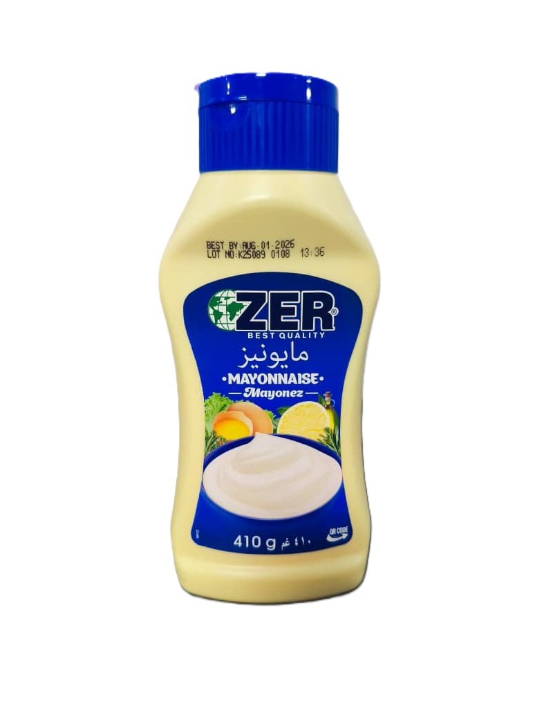 La mayonesa ZER de 410 g es un producto de origen turco, elaborado con aceite de girasol, yema de huevo y vinagre, con conservantes y antioxidantes para mantener su frescura. Es una mayonesa clásica, cremosa y versátil, ideal para acompañar comidas y preparar salsas.