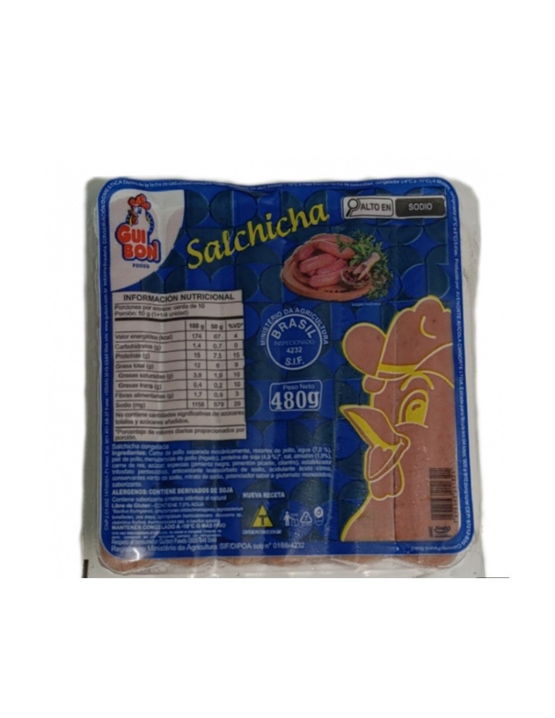 Aunque la ficha exacta no siempre está disponible, las salchichas de pollo GUIBON suelen incluir: