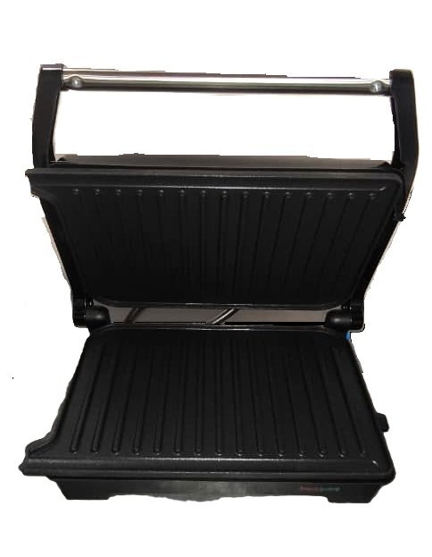 - Diseño tipo prensa: Funciona como sandwichera, parrilla eléctrica y prensa panini.