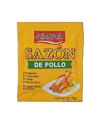 En resumen: el sazón de pollo MARWA de 10g es un condimento en polvo panameño, pensado para dar un sabor criollo y aromático a las preparaciones de pollo.