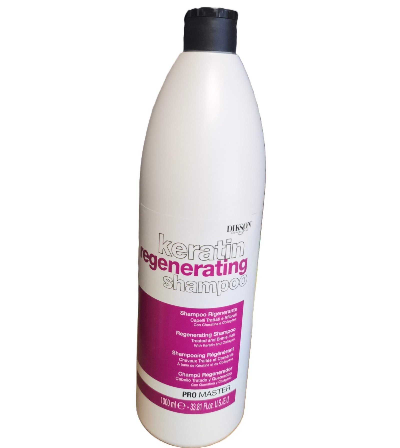 La acción reparadora intensiva de Dikson Promaster Keratin Regenerating Shampoo limpia suavemente sin eliminar los aceites naturales del cabello. Refuerza la estructura interna del cabello y mejora su elasticidad desde la primera aplicación.