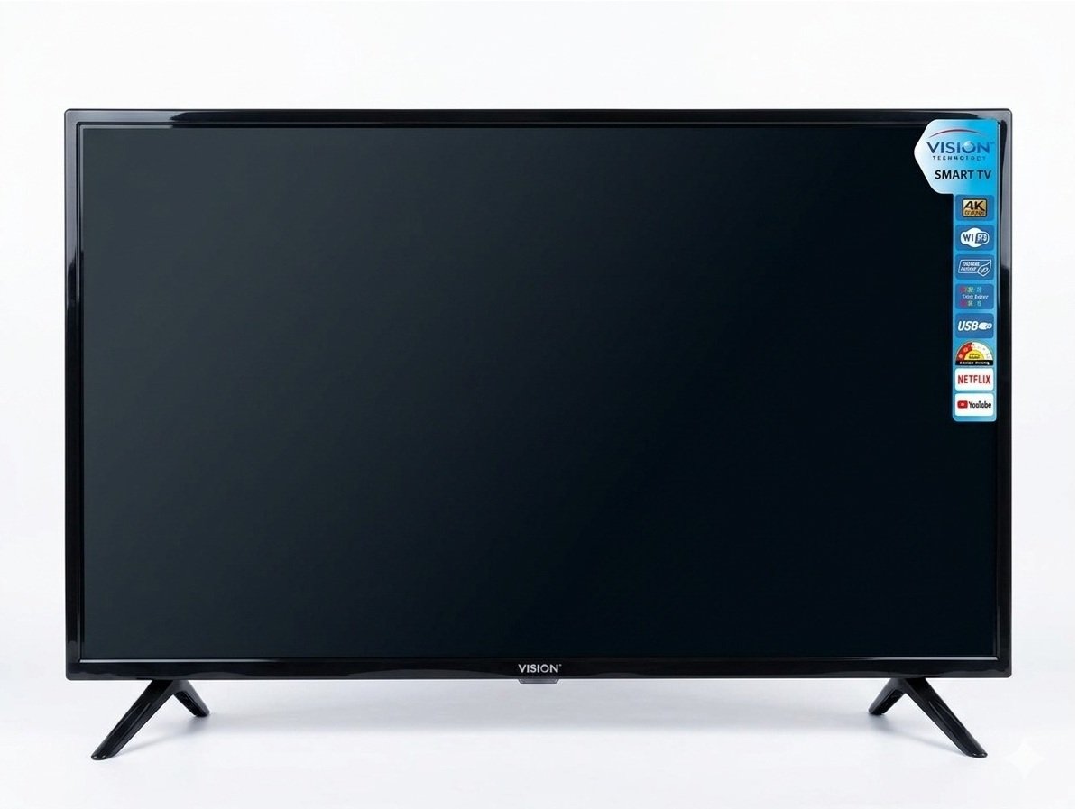 El televisor Vision Technology de 55 pulgadas es un modelo LED Smart TV con resolución UHD 4K, conectividad Wi-Fi y múltiples puertos HDMI/USB. Está diseñado para ofrecer buena calidad de imagen y sonido envolvente a un precio accesible, ideal para salas medianas o grandes.